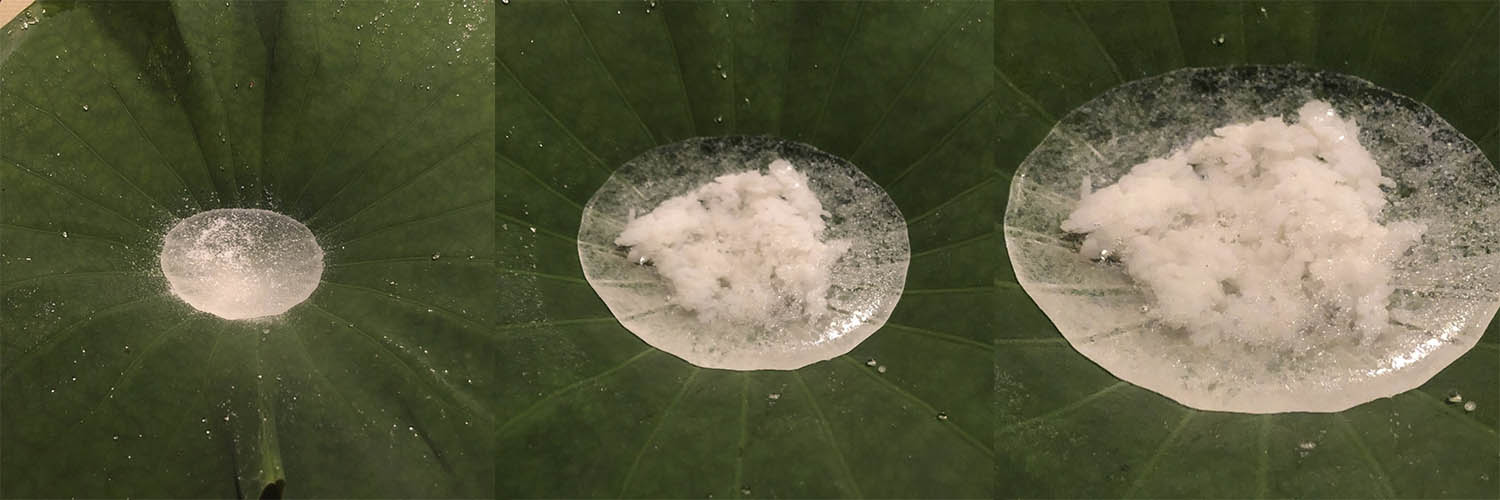 El plat més bell: aigua pura i pols d’arròs i arròs en una nelumbonaceae.