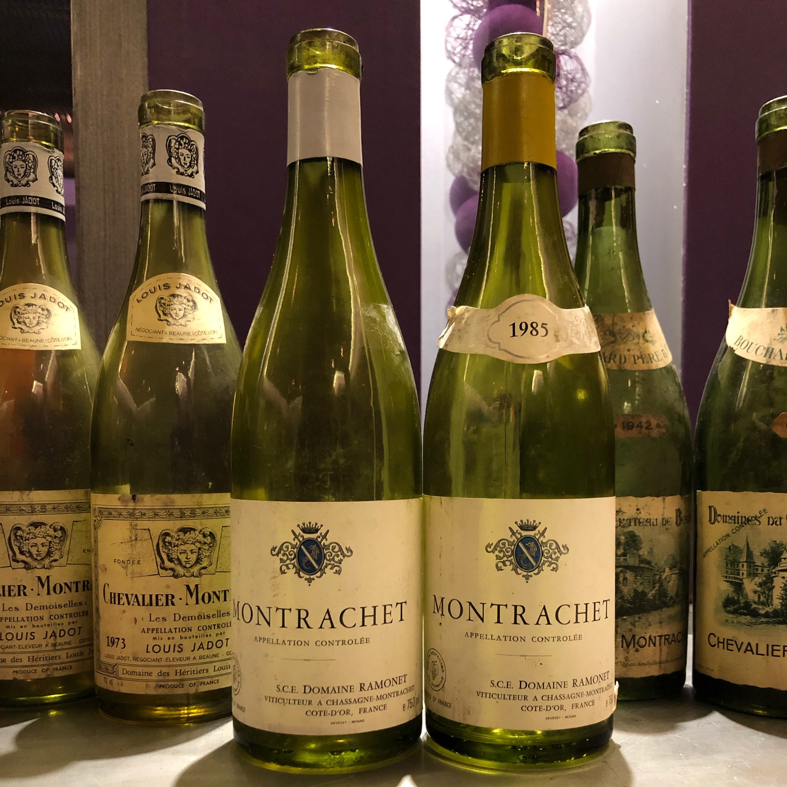 Louis Jadot Chevalier-Montrachet Grand Cru Les Demoiselles 1973. Una parcel·la única damunt i a la dreta de Montrachet. 46 anys i encara una increïble capacitat de guarda.