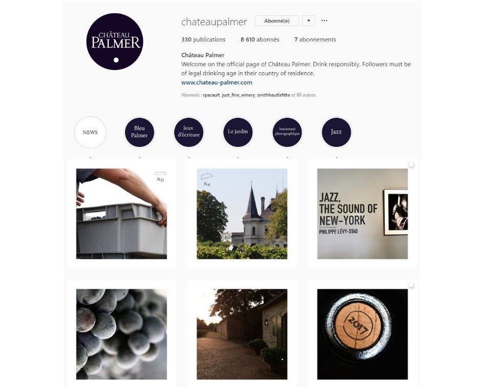 Amb aquest esperit, m’agrada la comunicació que va fer Château Palmer a Bordeaux. Cada any es defineix un tema (color blau el 2018, jazz el 2019…) i tota la comunicació gira al voltant de cada tema (les targetes de felicitacions, la revista de paper, l’atmosfera de publicacions a les xarxes socials, les exposicions i els esdeveniments celebrats al château). Aquesta organització és consistent, inspiradora i reflecteix una bella harmonia amb el vi d’agricultura biodinàmica.