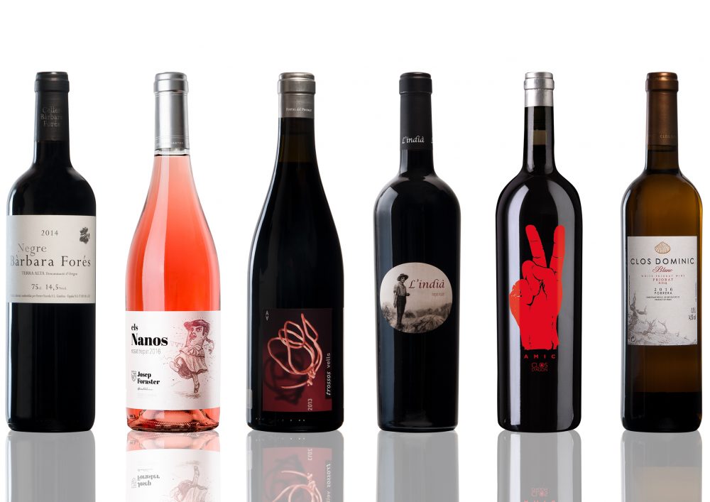 Et convidem a descobrir cinc de les dotze regions catalanes amb 4 grans negres –de l’Empordà, Montsant i Terra Alta–, un rosat de la Conca de Barberà i un escàs blanc del Priorat. Cuvées sorprenents de petits celler catalans amb una gran personalitat. Els Nanos, el rosé de la selecció, està elaborat amb ull de llebre i cabernet sauvignon. És un vi amable i fàcil de beure que demana una segona i tercera copa, i resulta perfecte per acompanyar entrants i plats de pasta. L’Indià Tinto Roble és un vi saborós i amb caràcter que s’elabora amb garnatxa i carinyena pels germans López de l’Hotel Villa Retiro des de La Catedral del Vi a Gandesa. També des de la Terra Alta, l’anyada 2014 de Bàrbara Forés Negre, un vi per compartir, amb una criança de 12 mesos en bótes de roure francès de 300 litres. A Les Gavarres, Empordà, neix Clos d’Agon Amic, de curta criança i on la fruita es mostra fresca. El renombrat arquitecte, Alfredo Arribas, també és un apassionat del vi. Des del seu celler Clos del Portal elabora, entre altres, Trossos Vells. Un negre de carinyena de petites parcel·les del Masroig. Ampolla on hi destaquen les fruites negres i les violetes, tot un imprescindible del Montsant. I, per acabar, Clos Dominic Blanc 2013, un blanc espectacular, llaminer i amb un postgust llarg que, al nas, sorprèn pels fruits secs, els cítrics i les herbes aromàtiques.