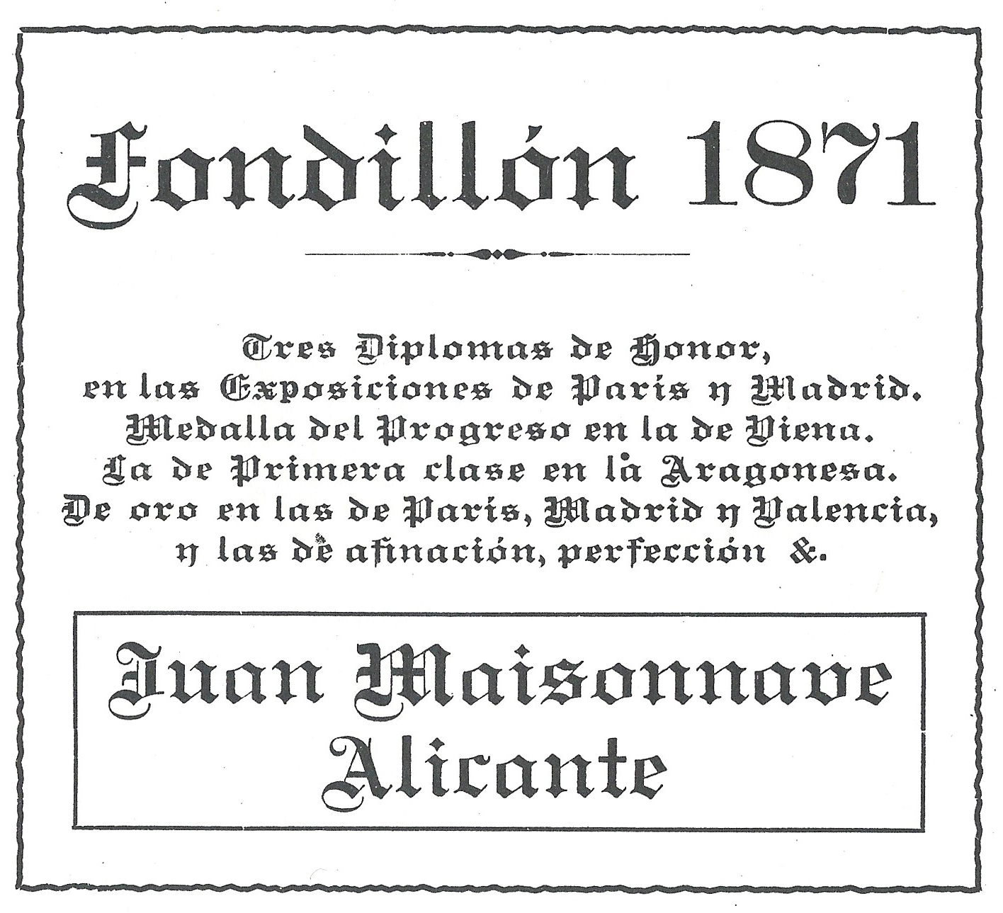 L’aparició de la fil·loxera a les vinyes de França a partir del 1868, va reduir en set anys la producció de vi en aquest país a la meitat. En conseqüència, es va produir una important demanda francesa de vi alacantí i diverses famílies de comerciants gals es van establir a la ciutat. A la fi de segle, la família Maisonnave exportava Fondillón a un preu (800 francs/hectolitre) que quadruplicava el del vi de Jerez.