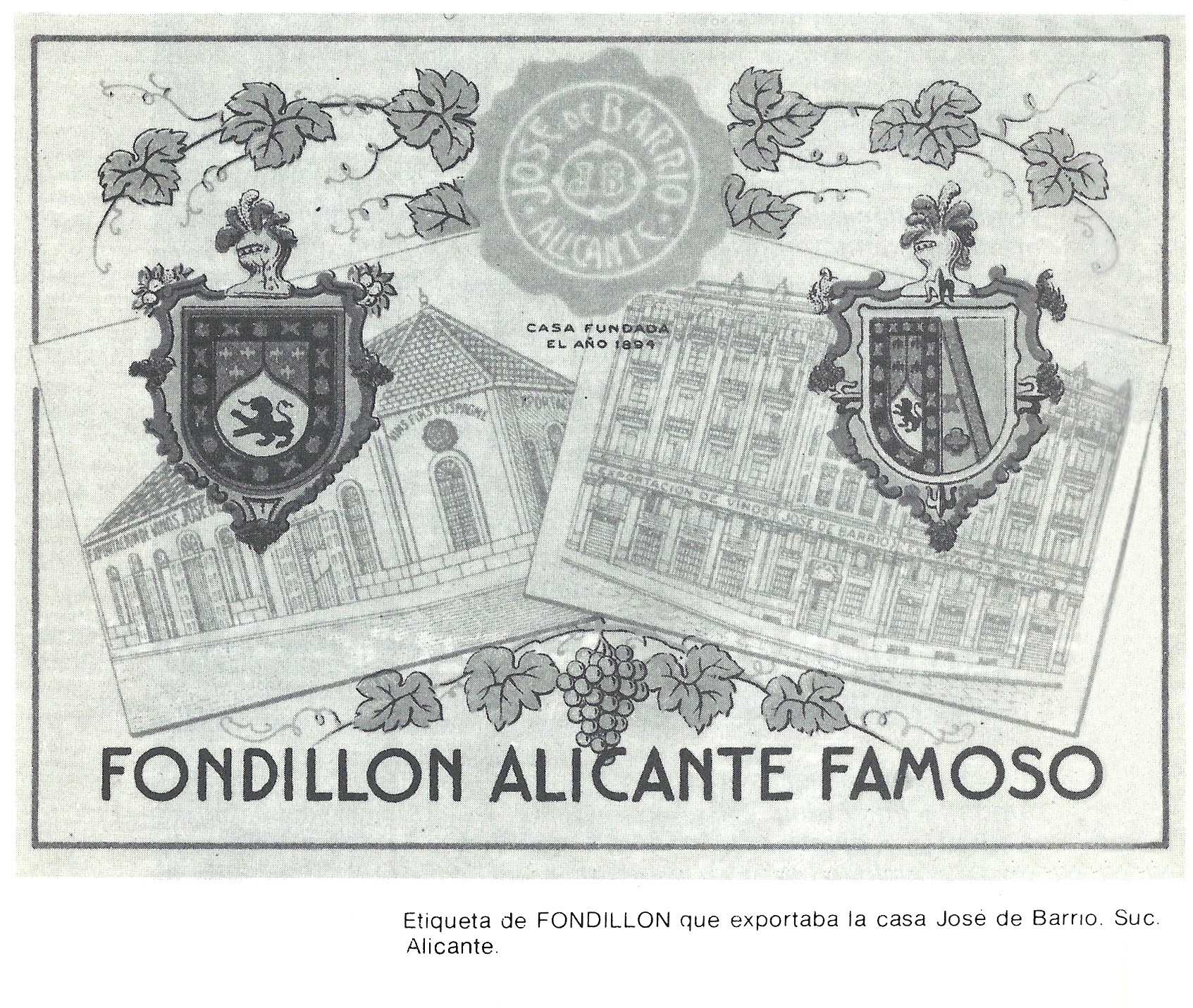 Etiqueta de Fondillón que exportava la casa Jose de Barrio. Suc. Alacant