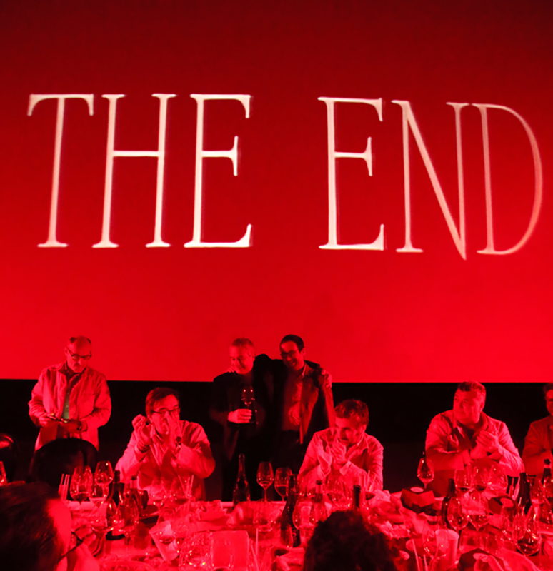 El passat dijous 17 de novembre vam celebrar “La Cata del Año” dels Casacas Rojas al Cine Bosque de Barcelona. Una degustació de pel·lícules i vi acompanyada de delícies gastronòmiques, dirigida per Daniel Vázquez Sallés (periodista i escriptor) i Quim Vila. 28 Casacas Rojas es van reunir al voltant d’una impressionant taula imperial sobre un gran escenari als peus de la pantalla i van compartir aquesta experiència única en què el cinema, el vi, la gastronomia i l’amistat van ser els protagonistes.