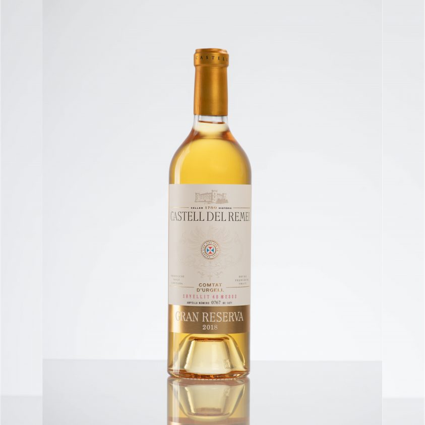 Castell del Remei Gran Reserva 2018 s’elabora amb els raïms de macabeu i chardonnay, recol·lectats a mà i triats a la taula de selecció. Les dues varietats fermenten en bota per separat, ja que es veremen amb un mes de diferència.