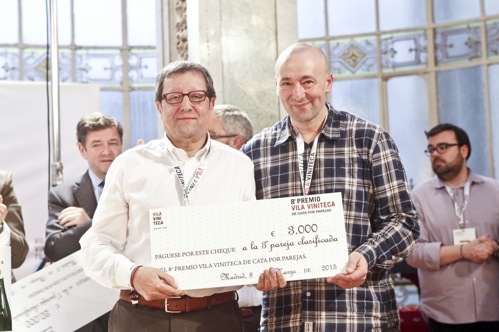 Després d’una emocionant final, la parella de Santander formada per Philippe Cesco (importador de champagne i propietari de la Vinoteca Ruta del Vino) i Jean Marcos Núñez (reconegut “sumiller” i col·laborador de Cesco) es van alçar amb el premi de 20.000€. El 8è Premi Vila Viniteca de Tast per Parelles va tenir lloc el passat 8 de març de 2015 al Casino de Madrid.