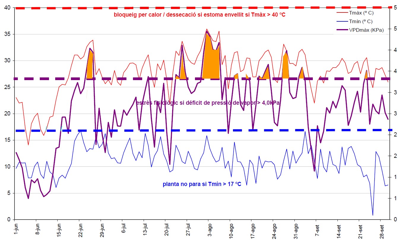No van haver-hi grans cops d’estrès ambiental. Les nits van ser fresques durant tot el cicle vegetatiu, i l’estrès màxim va tenir lloc al mes d’agost, permeten la parada del creixement vegetatiu al temps que s’iniciava el verol del raïm.