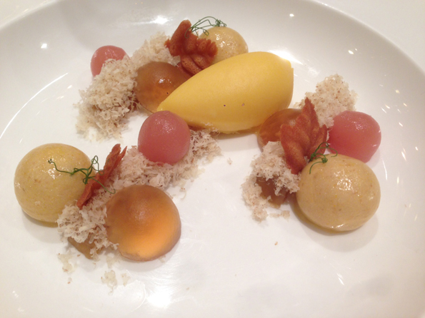 APERITIUS VIA VENETO: Dumplings de “Txangurro” – Pernil de Jabugo 5J – Assortiment de marisc de las rías gallegues amb guarniment sorpresa – Olives gordal amb geleé de vermuth de Reus – Bombó de xocolata i foie – Teules de parmesà amb anxoves de l’Escala – Steak tartar amb patates soufflé – Girella del Pallars – Croquetes de garotes de Cadaqués – Sandvitx de garrí.