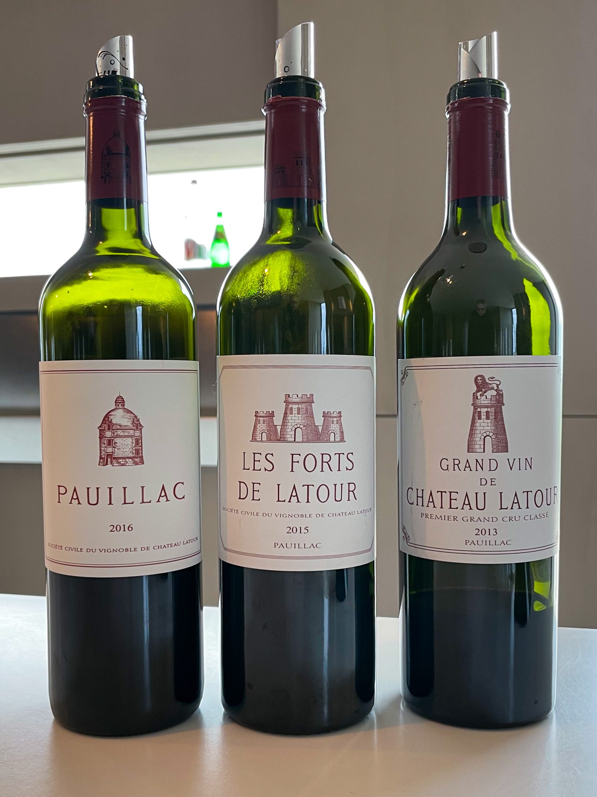 L’any 2012 Château Latour va decidir deixar d’oferir els seus vins a l’avançada. Es bevien massa joves —deien— i quan encara no es gaudien en la seva plenitud. Feia anys que guardaven estoc per a comercialitzar-lo en el futur i no deixar el mercat desproveït. Aquest any surten a la venda Château Latour 2013, Les Forts de Latour 2015 i el seu 3r vi, el Pauillac 2016. Latour 2013 és l’anyada més difícil en molt de temps. Una rigorosa selecció a la verema va donar un vi amb un color molt més obert del que és normal, una aroma delicada i amb una accessibilitat immediata i poca capacitat de guarda. Les Forts 2015 és una altra història: maduresa, carnositat, bé de farciment i molt sàpid. Pauillac 2016 té els tanins ben polimeritzats, amb longitud, accessibilitat i alhora una bona guarda.