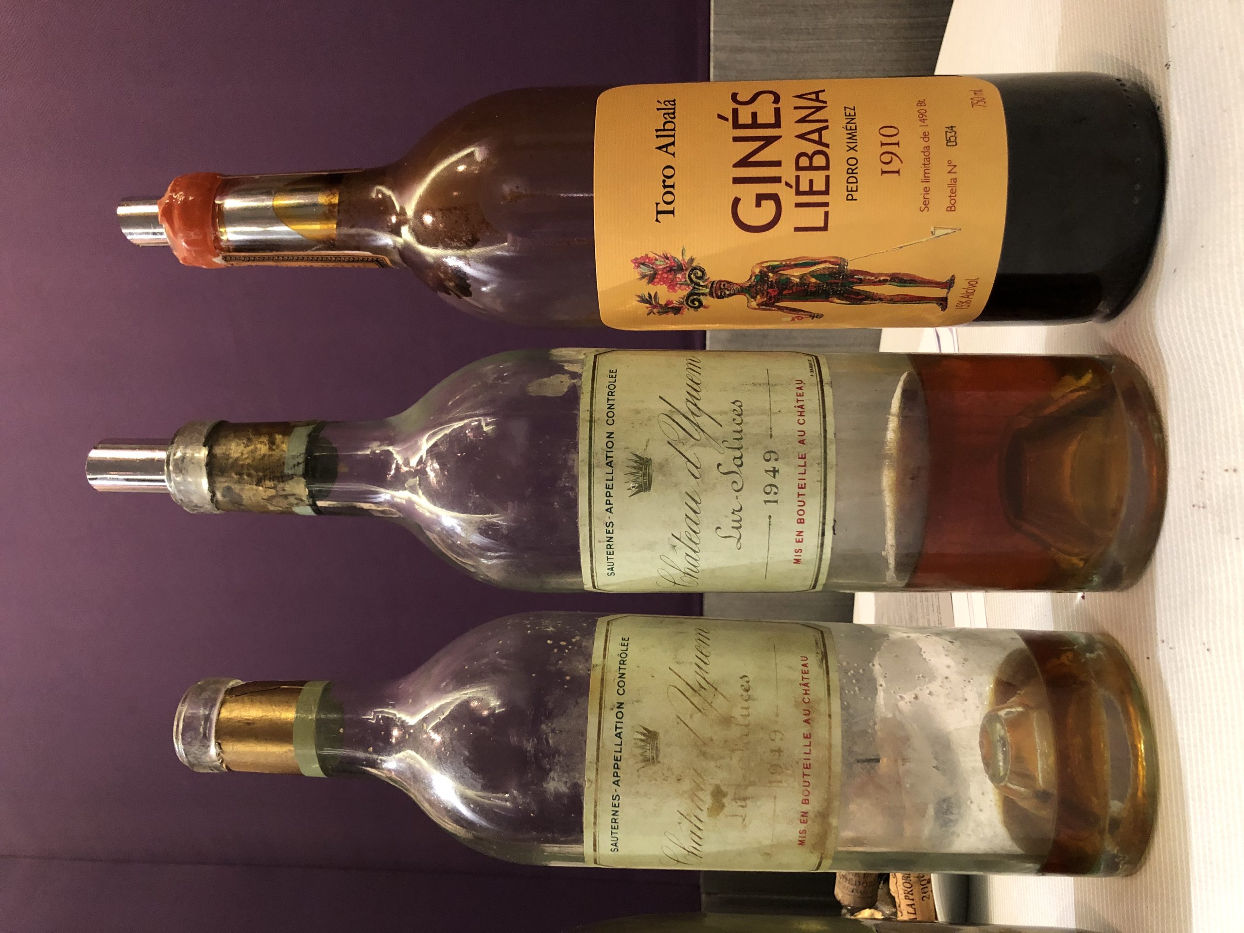 Deliciosos y refinados Château d’Yquem 1949, antes de un contundente Toro Albalá Pedro Ximénez Ginés Liébana 1910 como colofón de fiesta.