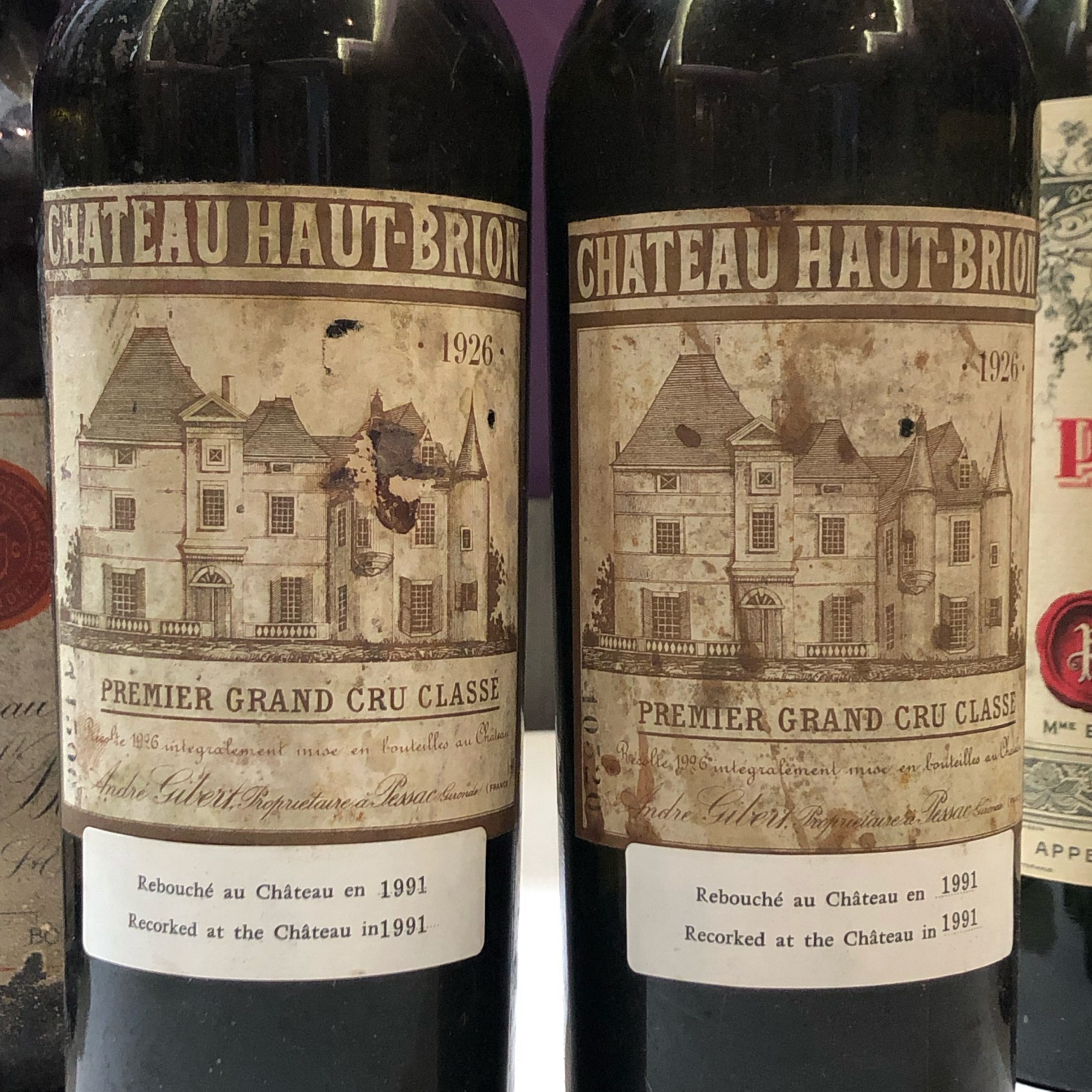 Château Haut-Brion 1926. Recorchadas por el château en 1991. Impresionantes.