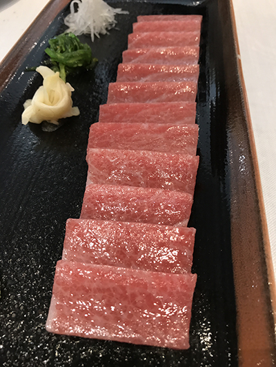 El sashimi de ventresca de Espai Kru. Barcelona.