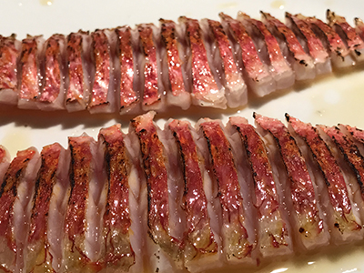 Los salmonetes del Restaurante Hisop. Barcelona.
