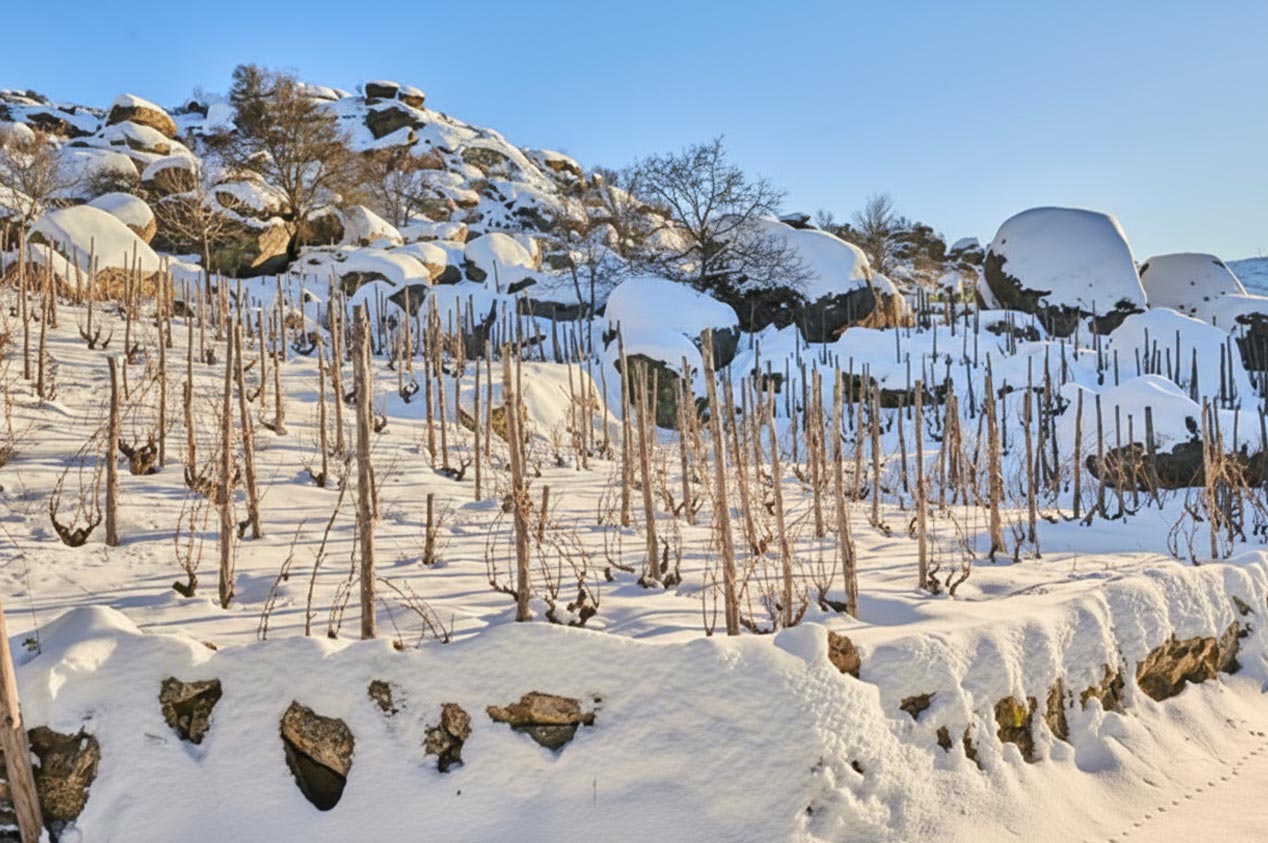 Después de un otoño lluvioso y un comienzo de invierno pausado, a primeros de año aconteció un hecho insólito. Una gran tormenta de nieve sacudió el centro de la península. Las viñas se cubrieron con casi un metro de nieve y así permanecieron durante días. Los colegios cerraron una semana.Filomena marcó la añada ya desde sus inicios. Pareciera que hubiese pasado un gran tornado. Árboles vencidos, ramas caídas, bosques abatidos. Muros que hubo que reconstruir. Una visión apocalíptica ante nuestros ojos por el efecto de la nieve. Apenas pudimos entrar en las viñas hasta mediados de febrero.[…]
