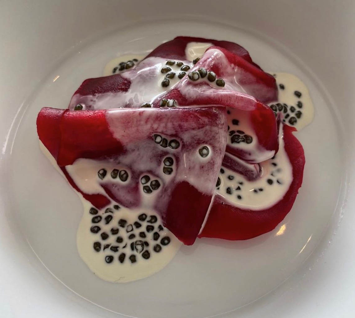 Remolacha Crapaudine con salsa de caviar Osetra. Mirazur. Menton