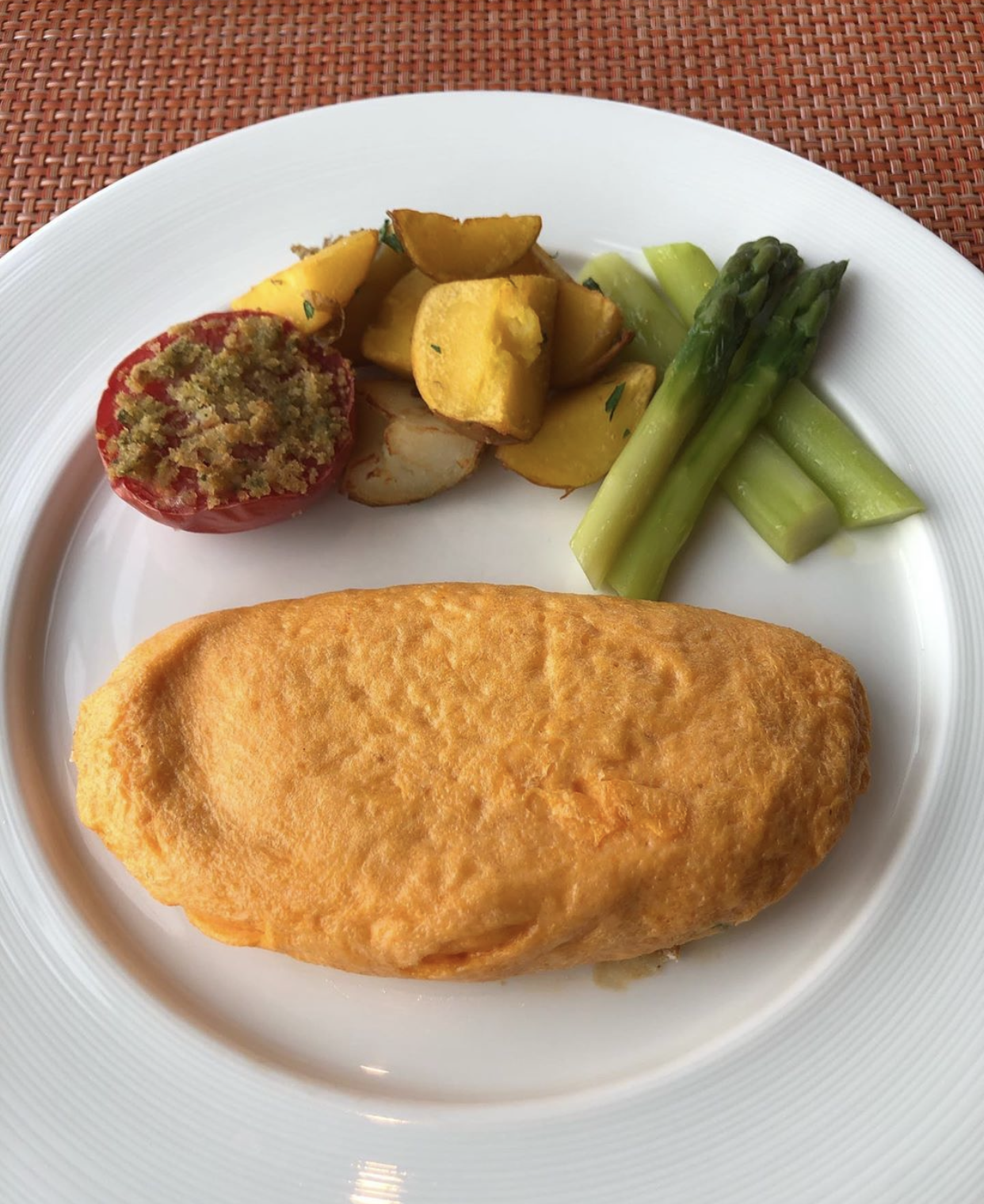 Tortilla francesa naranja-rojiza hecha con huevos de la granja Nakamura en Yamanashi. Tokyo
